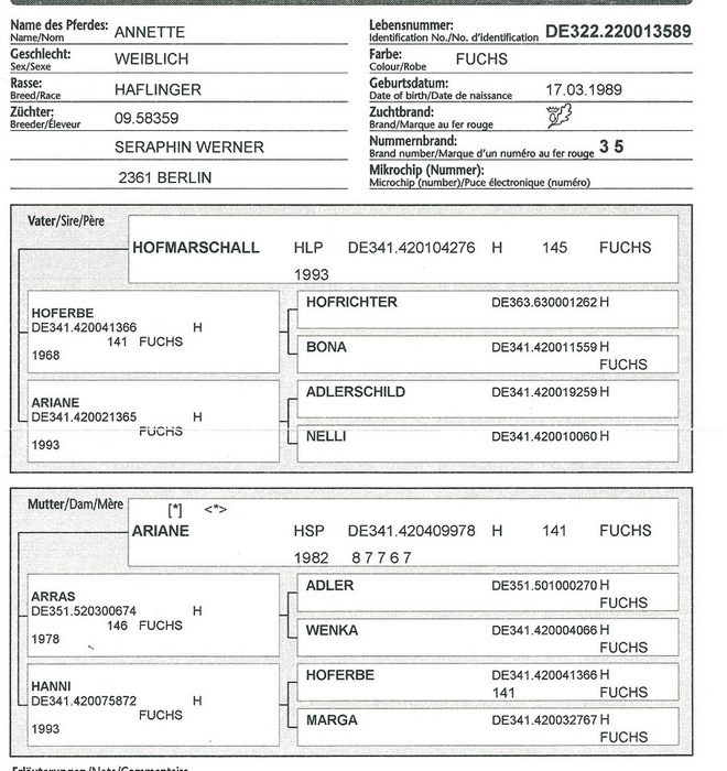 Annette war die Mutter von meiner Zuchtstute Alexa und somit auch die Oma von Maggie und Magnus. Sie war eine sehr besonnene Stute, charakterstark, unheimlich unkompliziert im Umgang, die gute Seele der Herde und wahnsinnig verfressen. Letzteres hat ihr leider auch den Tod gebracht. Sie ist im Alter von 26 Jahren erbärmlich an einer Kolik verstorben aufgrund von verdorbenen Backwaren die in großen Mengen von Unbekannten auf die Weide geschmissen wurden. Die Tierärztin konnte sie nur noch von ihren Qualen erlösen. Ihr plötzlicher Tod und die Umstände haben uns sehr schockiert und machen mich auch heute noch wütend.